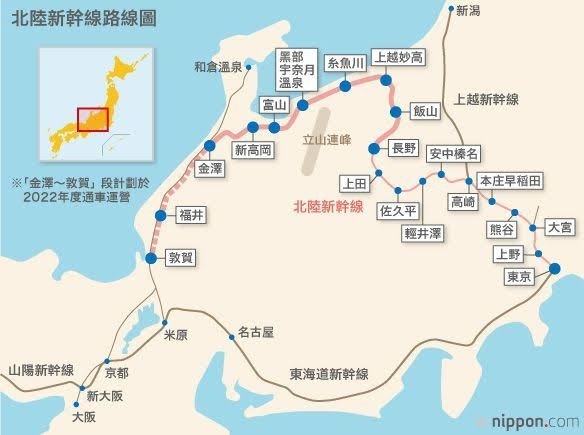 ▼這是北陸新幹線的圖,飯山站算是新站,原本野澤溫泉要從長野站下車,再轉JR再Bus才能到,但是自從北陸新幹線開通到金澤之後,現在只要坐到飯山站,再坐一小段的接駁Bus就可以輕鬆抵達,真的十分方便,中間還會經過輕井澤這站,也可以順便規劃到行程之中